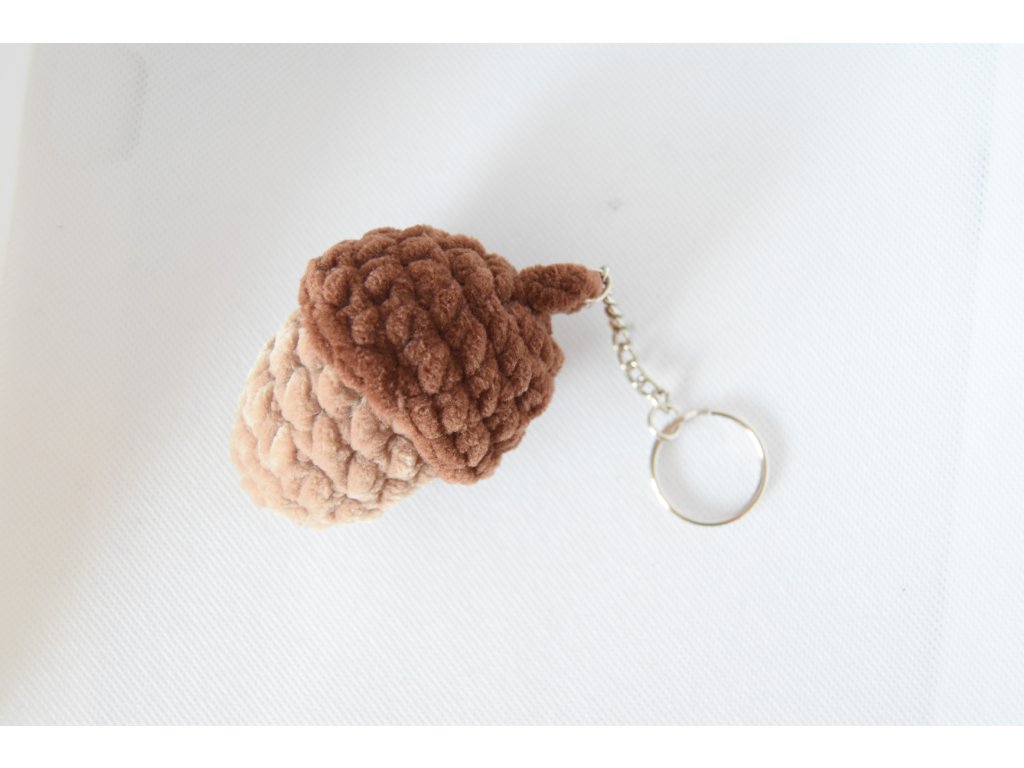 Ručně háčkovaný žalud na kovovém řetízku. Velikost: 7cm, délka s řetízkem: 14cm, material: žinylková příze, výplň: duté vlákno.